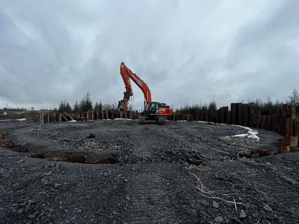 Circular cofferdam completed for a wind turbine base at Lisheen wind farm, Co. Tipperary.