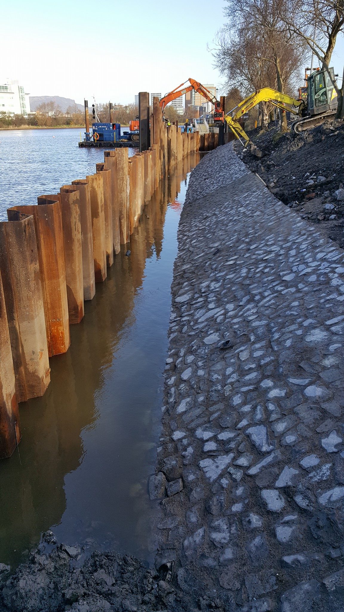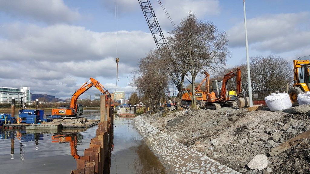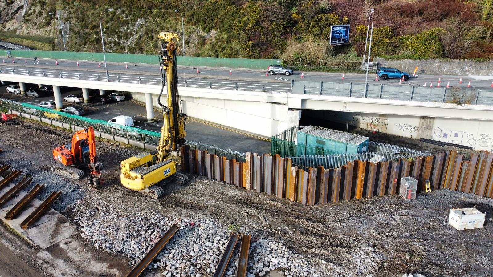 1000m of sheet piles installed to protect Waterfords new transport hub.