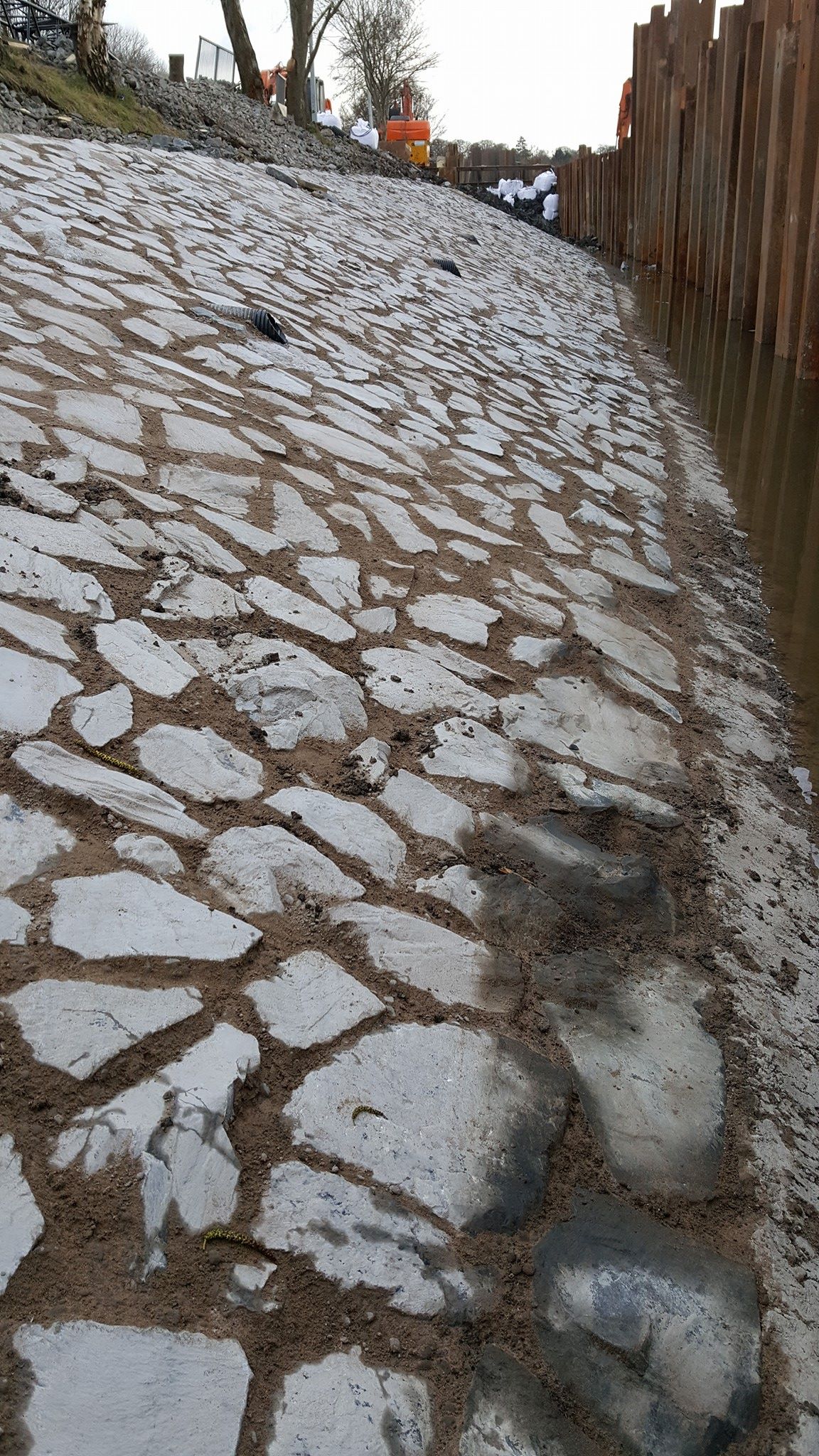 100m section of stone pitching replaced along the river Lagan.